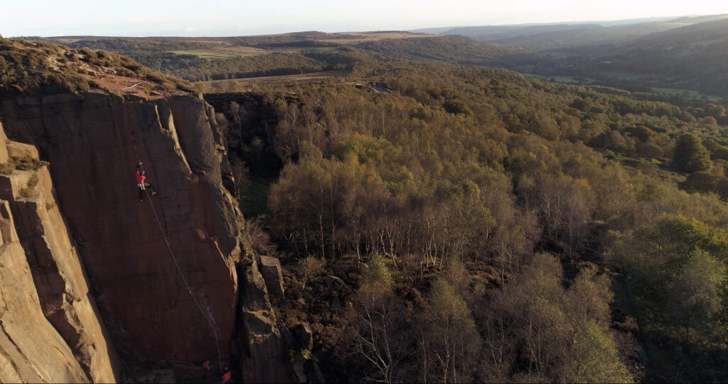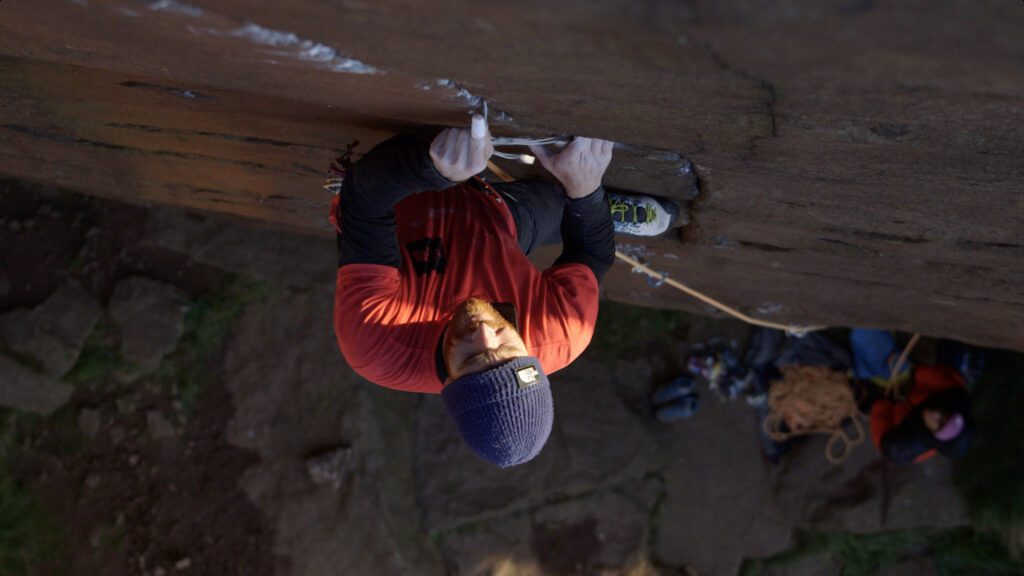 Siebe commenta: “Molti anni fa mi sono detto che avrei fatto un grande viaggio di arrampicata tradizionale nel Regno Unito. Avrei viaggiato dal Peak District al Lago, a Pembroke, in Scozia, nel Galles del Nord, nel Devon, a Gogarth e molti altri. Ho sognato scalare le linee più classiche e storiche e avere un assaggio di questa forte cultura trad-climbing britannica. Quest’anno ho potuto, almeno, iniziare questo ambizioso progetto, con l’aiuto del regista Andrea Cossu. Avremmo visitato l’Inghilterra e catturare l’essenza dell’arrampicata di Gritstone e della sua gente, dando vita a un progetto di riprese che chiamiamo “Friends of the Grit”. Questo viaggio di due settimane e mezzo nell’ottobre 2021 ha portato a un viaggio interessante, regalandoci l’esperienza Gritstone completa. Abbiamo fatto una grande quantità di arrampicate se incontri stimolanti.